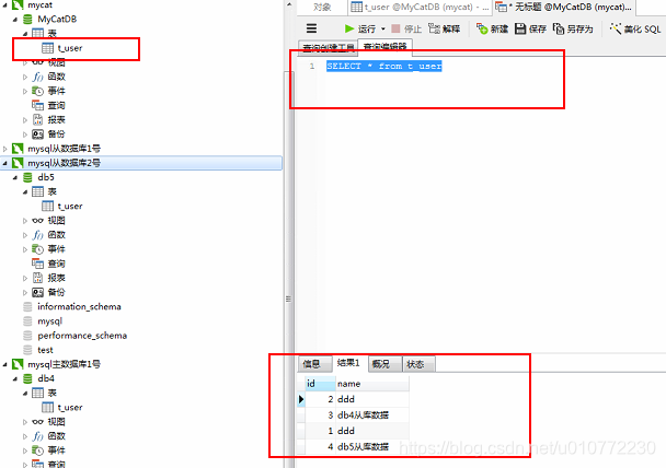 通过mycat查询出来的数据有四条数据,验证完毕。