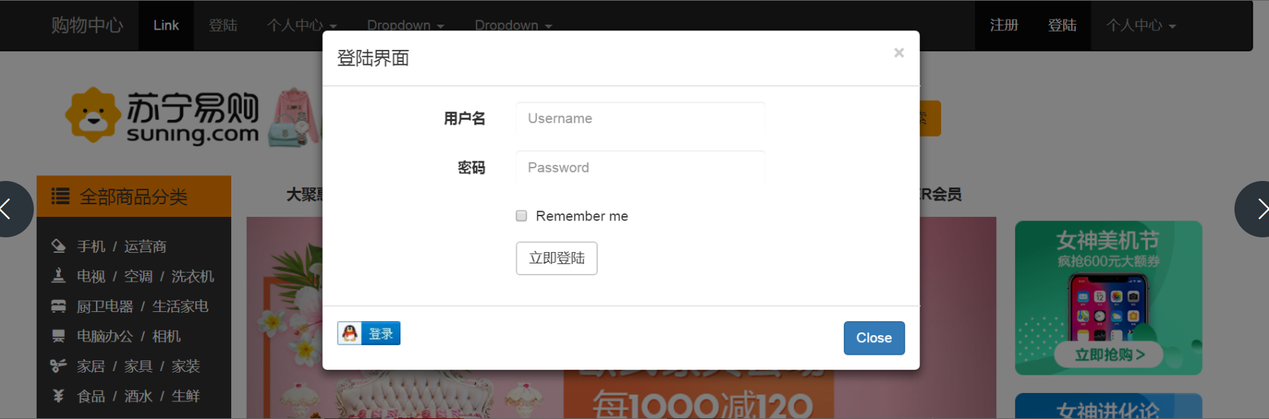 2.登陆页面:这里登陆主要是第三方工具QQ互联登陆,当然你也可以用注册的账号进行登陆,如下图: