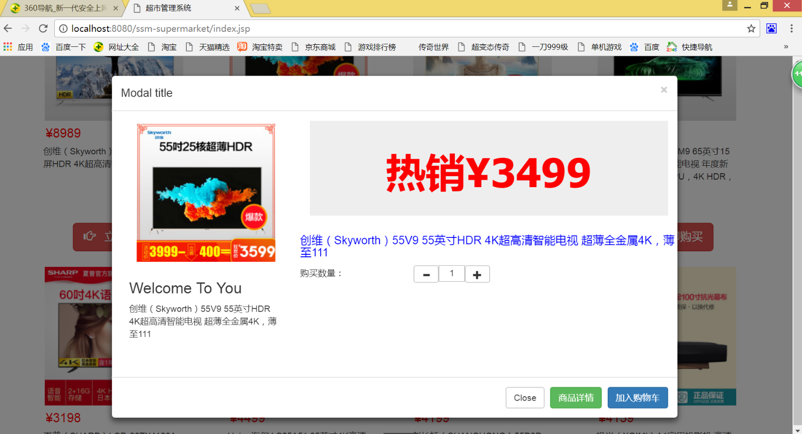3.商品展示主要是点击商品,发送ajax请求,弹出模态框 , 如下图: