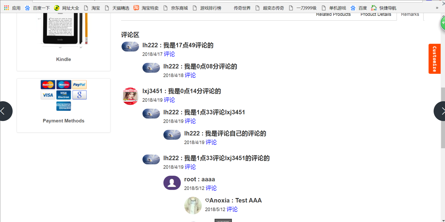6.商品评论 , 如下图: