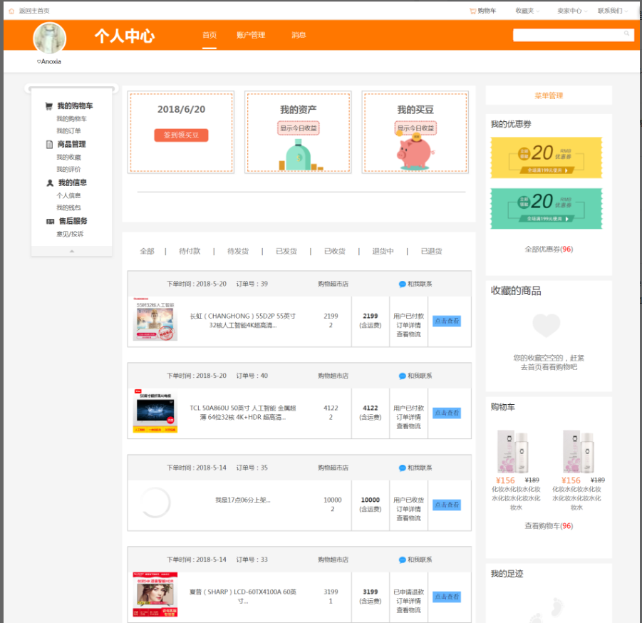 7.用户个人中心 , 如下图: