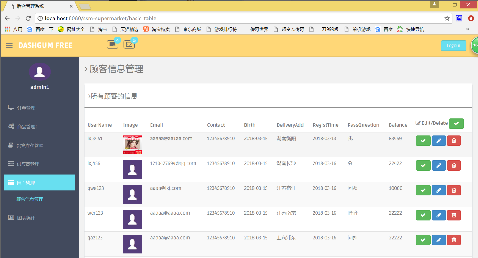 10.用户管理界面 , 如下图: