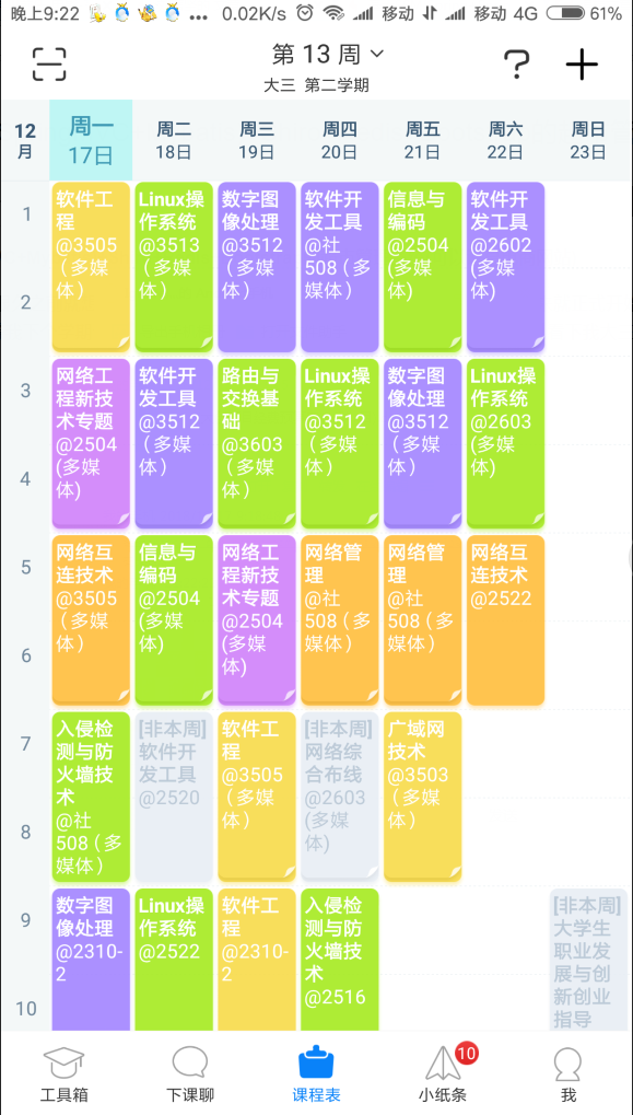 转眼间就2018年6月6日了,很久之前就想写博客,但是每次都是没时间,就没有写,乘着今天想起来就正式开始写我的博客了,从大二以来课程特别多,每次都在想等我下个学期课少了就有时间写博客了,但是一次比一次课多,大家可以看下我大三下学期的课表,也就是现在我的课表: