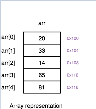 例如存储整数的一个Array,每个整数占4字节,在内存中的情况如下: