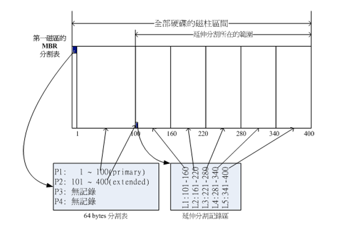 (这里就联想到了对Ubuntu进行安装的时候,会设置的主分区和逻辑分区,原来逻辑分区都是扩展分区,如/usr,/home,./var等)