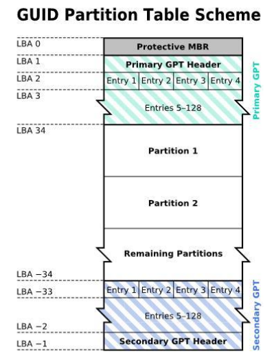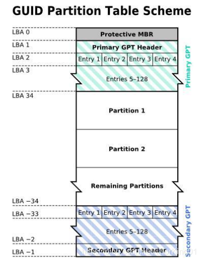 为了避免过去MBR区块损坏,不能修复,整个磁盘的最后34个LBA用来做前面的LBA的备份。