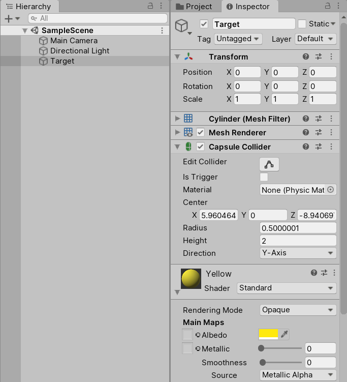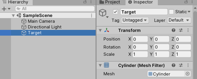 3.将材质球挂载到Target物体上