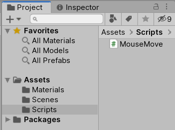 4.创建脚本MouseMove.cs