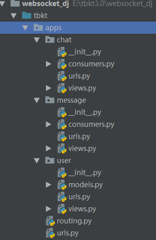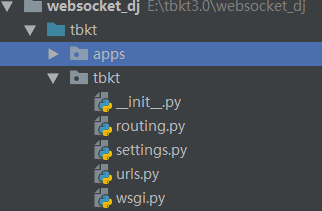 指定ASGI的路由地址,添加ASGI_APPLICATION = 'tbkt.routing.application'