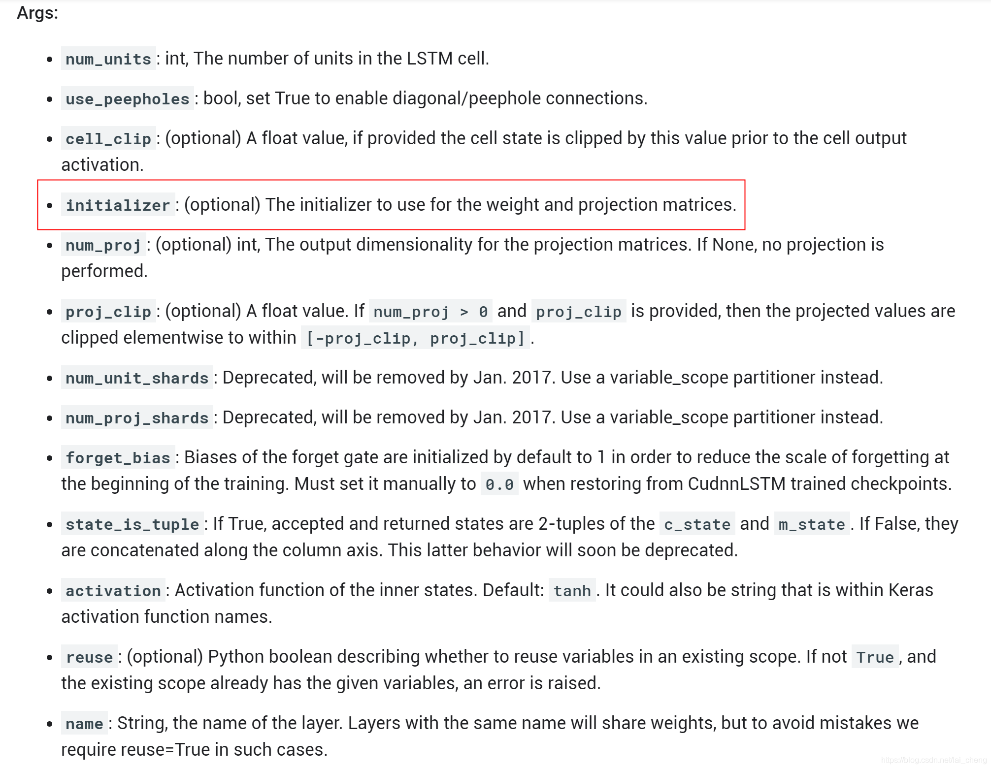 前一篇博客介绍了如何可视化神经网络的每一层,很简单的做法就是将训练好数据作为神经网络的初始化参数进行前向传播。在LSTM中我们可以从官方文档看到能初始化的参数只有weight。在可视化时我们往往需要传入weight和bias,或者载入模型参数继续训练也需要载入w和b。