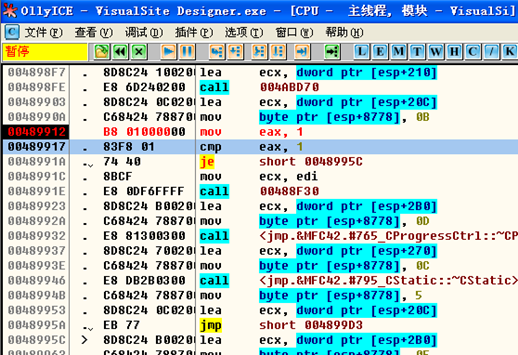 此处就是关键了。对比eax是不是为1,如果是是就跳转。下面改成这样的: