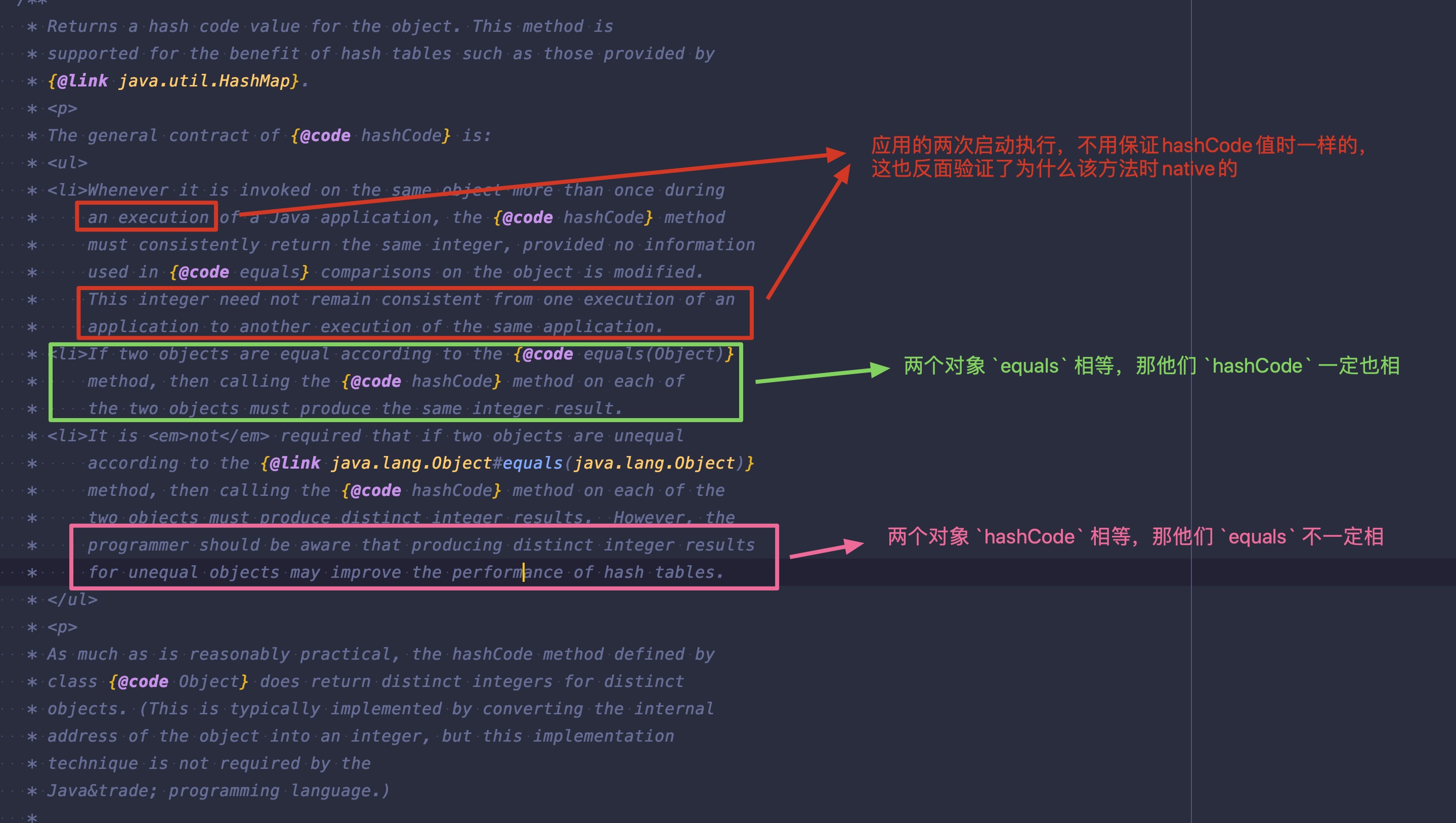 关于重写 equals 方法的约束,同样在该方法的注释中写的很清楚了,我在这里再说明一下: