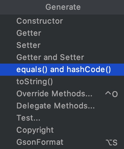 另外通过 IDE 快捷键生成重写方法时,你也会看到这两个方法放在一起,而不是像 getter 和 setter 那样分开