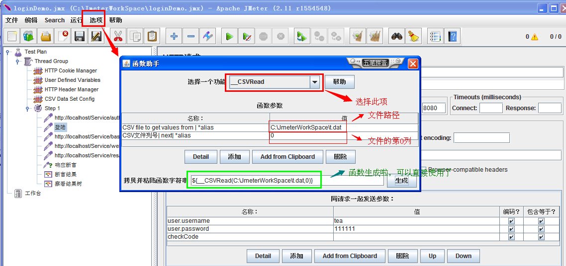 这里介绍两种参数化的方式:函数助手,CSV Data Set Config。