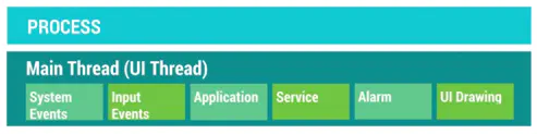 当我们启动一个App的时候,Android系统会启动一个Linux Process,该Process包含一个Thread,称为UI Thread或Main Thread。通常一个应用的所有组件都运行在这一个Process中,当然,你可以通过修改四大组件在Manifest.xml中的代码块()中的android:process属性指定其运行在不同的process中。当一个组件在启动的时候,如果该process已经存在了,那么该组件就直接通过这个process被启动起来,并且运行在这个process的UI Thread中。