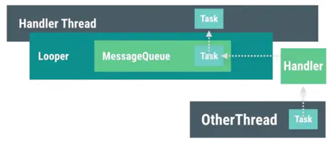 Android主线程包含一个消息队列(MessageQueue),该消息队列里面可以存入一系列的Message或Runnable对象。通过一个Handler你可以往这个消息队列发送Message或者Runnable对象,并且处理这些对象。每次你新创建一个Handle对象,它会绑定于创建它的线程(也就是UI线程)以及该线程的消息队列,从这时起,这个handler就会开始把Message或Runnable对象传递到消息队列中,并在它们出队列的时候执行它们。