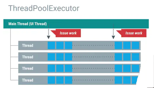 AsyncTask通过一个阻塞队列BlockingQuery存储待执行的任务,利用静态线程池THREAD_POOL_EXECUTOR提供一定数量的线程,默认128个。在Android 3.0以前,默认采取的是并行任务执行器,3.0以后改成了默认采用串行任务执行器,通过静态串行任务执行器SERIAL_EXECUTOR控制任务串行执行,循环取出任务交给THREAD_POOL_EXECUTOR中的线程执行,执行完一个,再执行下一个。