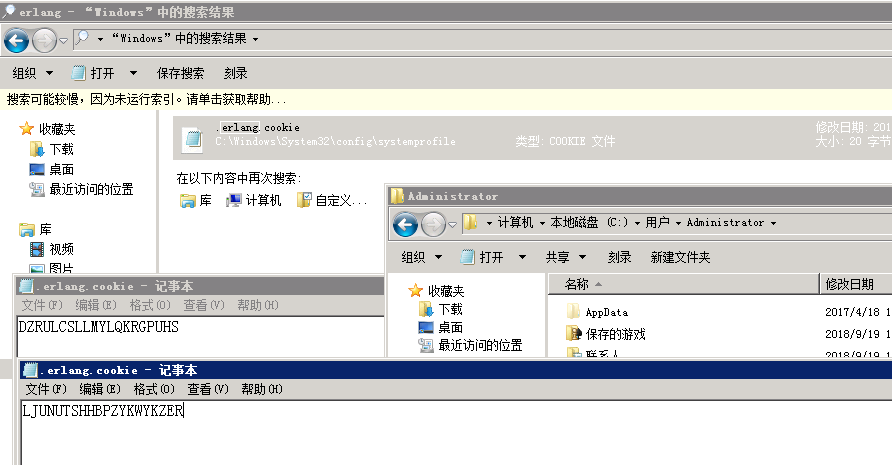 Erlang会生成两个cookie文件:C:\Windows\.erlang.cookie 及 C:\用户\计算机用户名\.erlang.cookie。检查两个文件内容是否一致,不一致用其中一个替换另一个即可。