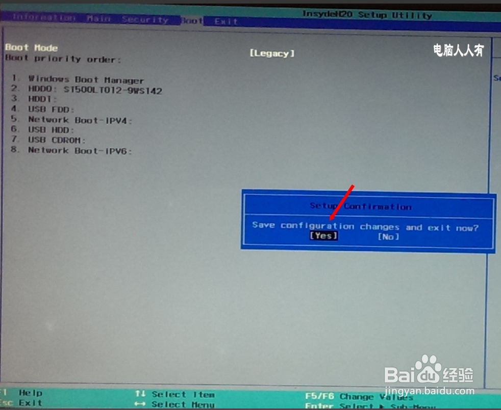 6、选中该项回车,打开设置项之后,这里有两个选项:UEFI 和 Legacy(使用上下键选中),引导模式选择Legacy。