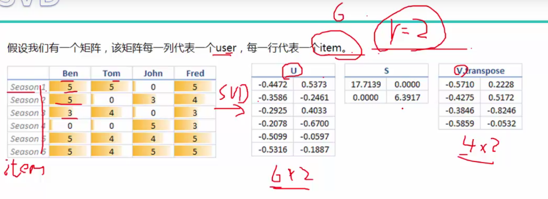 假设我们有一个矩阵,该矩阵每一列代表一个user,每一行代表一个item
