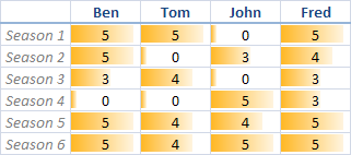 如 ben对season1评分为5,tom对season1 评分为5,tom对season2未评分。