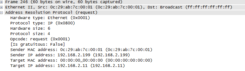 捕获到的ARP包及响应(ping来产生),协议类型。