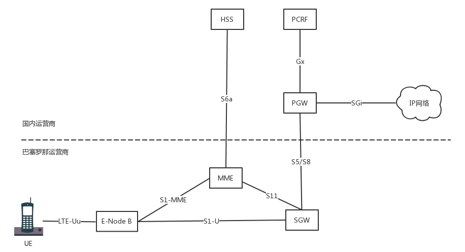 SGW是本地运营商的设备,PGW是所属运营商的设备,当你在国外要上网,MME回去查国内运营商的HHS,看看合法性,是否有钱。如果允许上网,手机和SGW会建立一个隧道,SGW和国内运营商的HGW建一个隧道,然后通过这个隧道上网。判断你能不上网的是国内的HHS,上网策略是国内运营商的PCRF,给手机分配的IP也是国内运营商统计,你的流量全部是通过国内运营商,不过国外的也会根据流量来结算。