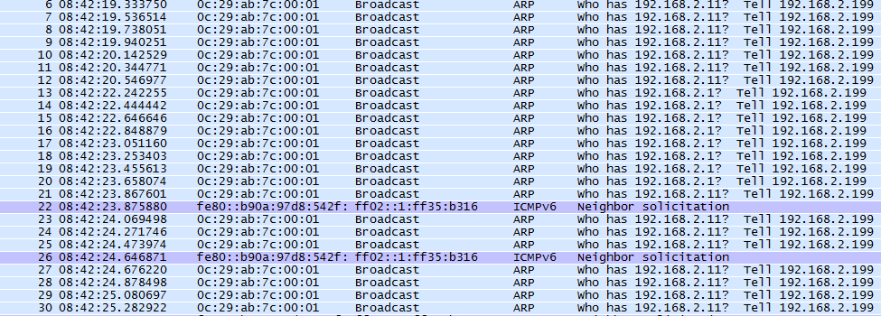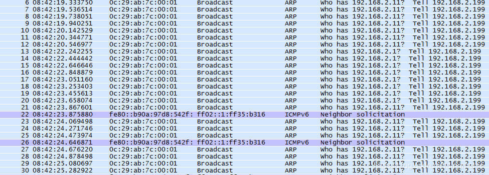 设备不断发arp包询问后台,当然这个arp是交换机发出来的,板卡发包给交换机,交换机不知道给谁,就发包广播询问,我们一下子就得到了指定服务端的IP。