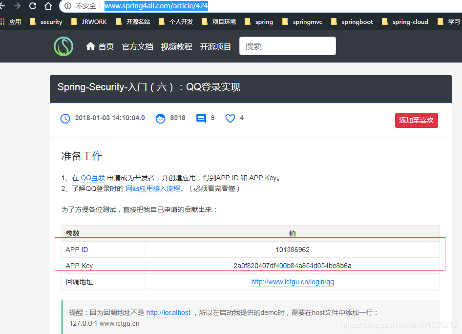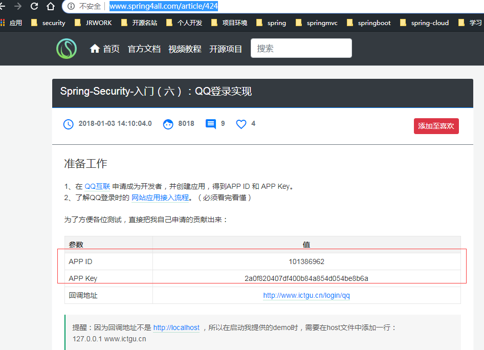 ok 在我们的配置文件中添加在qq互联申请的测试账号,我是直接用下面这儿已经申请好的,非常感谢