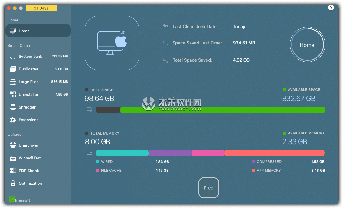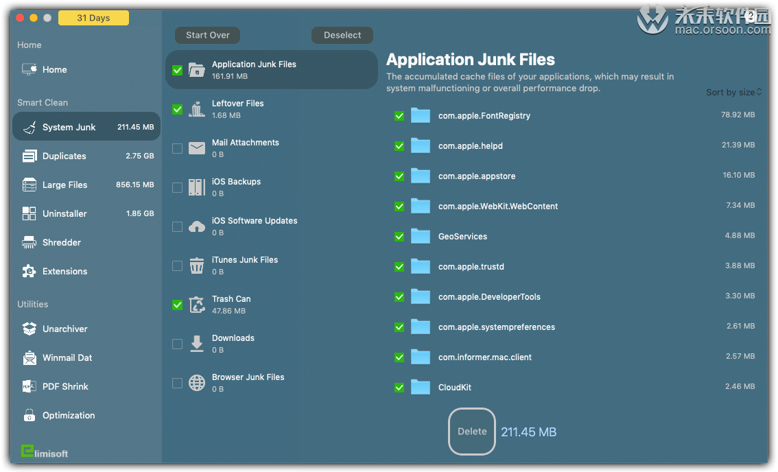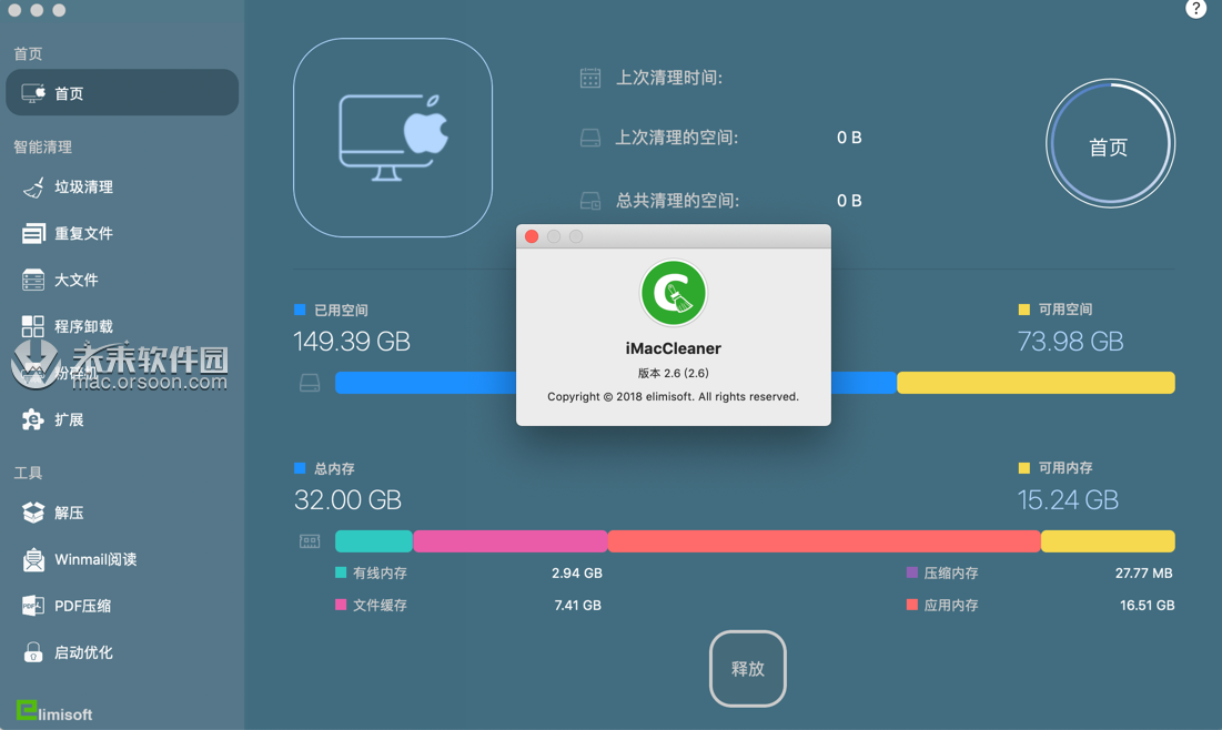 iiMac Cleaner Mac中文版是Mac平台上的一款系统清理维护工具。iMacCleaner Mac中文破解版是一款提供清洁光盘,删除应用程序,内存优化,重复查找器,文件粉碎机,管理项登录,扩展RAR提取和WINMAIL.DAT等功能的一体化系统清理维护工具。