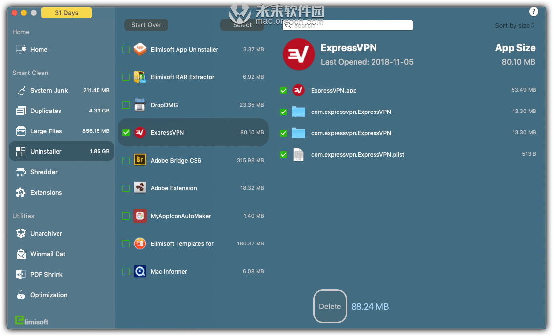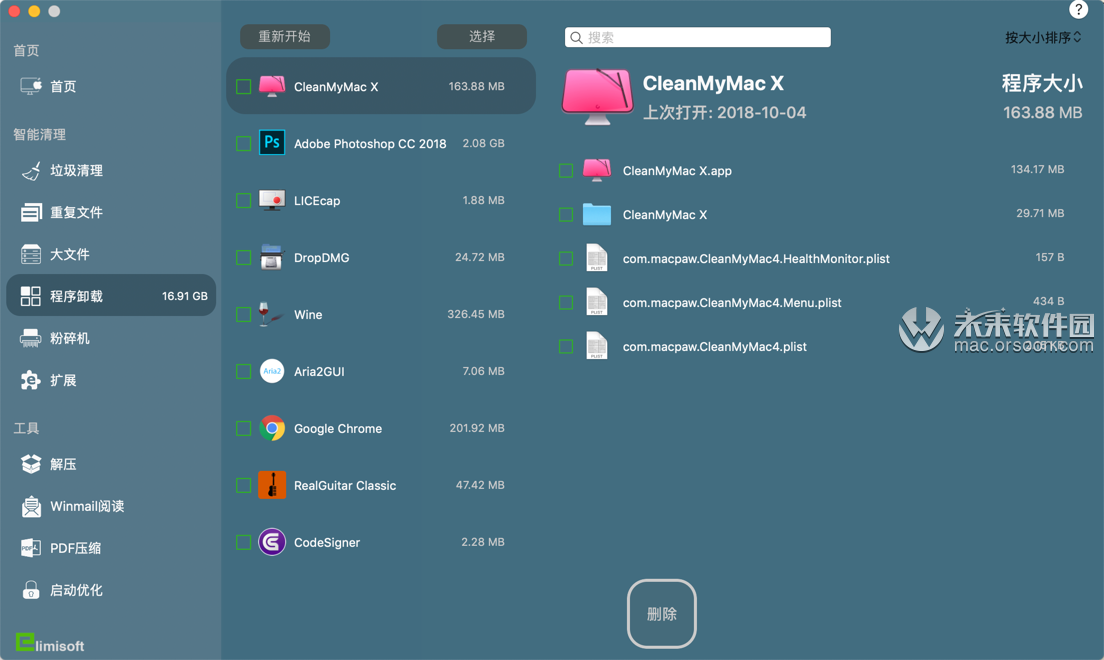 智能地自动选择应用程序及其关联的垃圾文件,您可以选择删除不常用的应用程序。