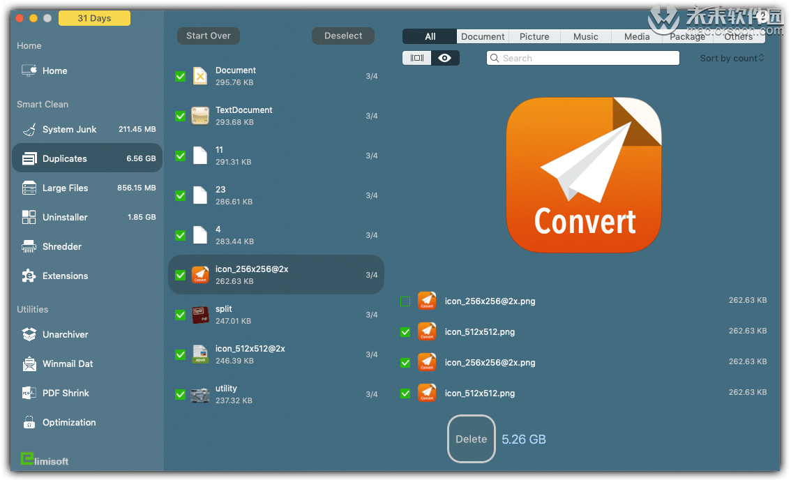 自动智能地选择重复文件,然后您可以选择要删除的最新或最旧文件。