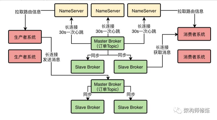 上面我们已经集群部署了消息路由中心 NameServer ,接下来我们看看怎么部署 Broker集群,应该用什么方式去部署。