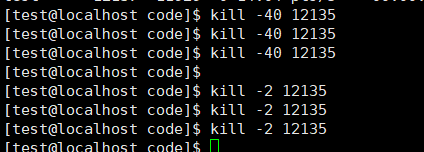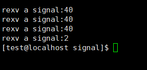 然后我们运行此程序,并在另一端向该进程传递三次40号信号和三次2号信号,结果如下