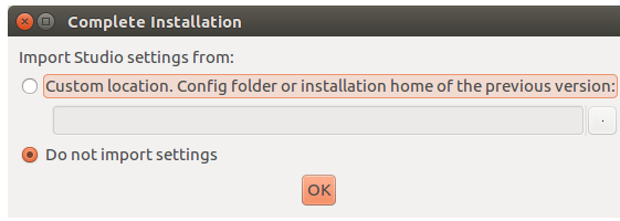 (2)此前安装过有对应项目就选import studio settings from: ,没安装过就选第二个。