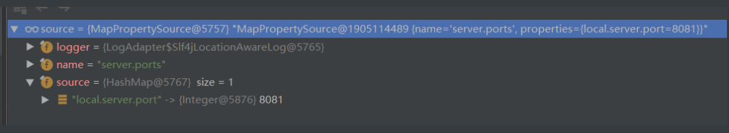 将自己添加到ApplicationContext.applicationListener列表当中,当容器刷新完成,并且Tomcat server启动成功之后往容器中添加一个名为"server.ports"的MapPropertySource,里面包含了Tomcat的启动端口