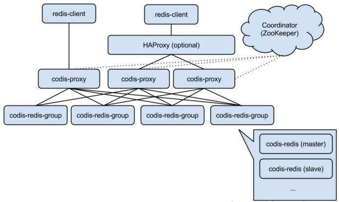 - Codis Proxy (codis-proxy) 实现redis协议,由于本身是无状态的,因此可以部署很多个节点