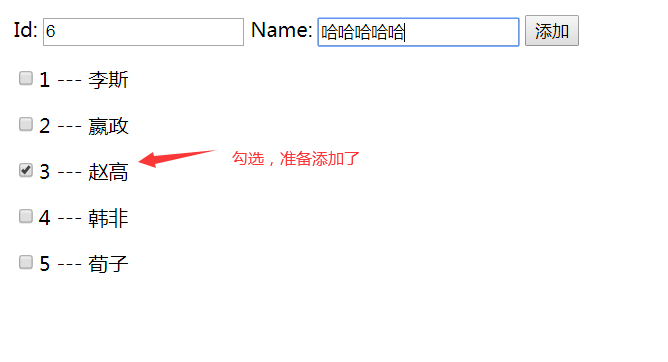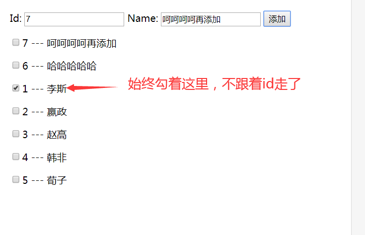 <input type="checkbox">{{item.id}} --- {{item.name}}
