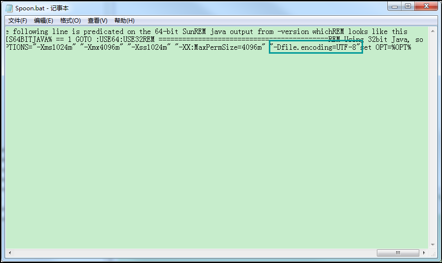 如果处理的数据中有中文,需要对中文设置编码格式,一般是utf8格式,彻底的修改格式的方法就是,修改spoon.bat或spoon.sh文件中增加如下信息:"-Dfile.encoding=UTF-8";