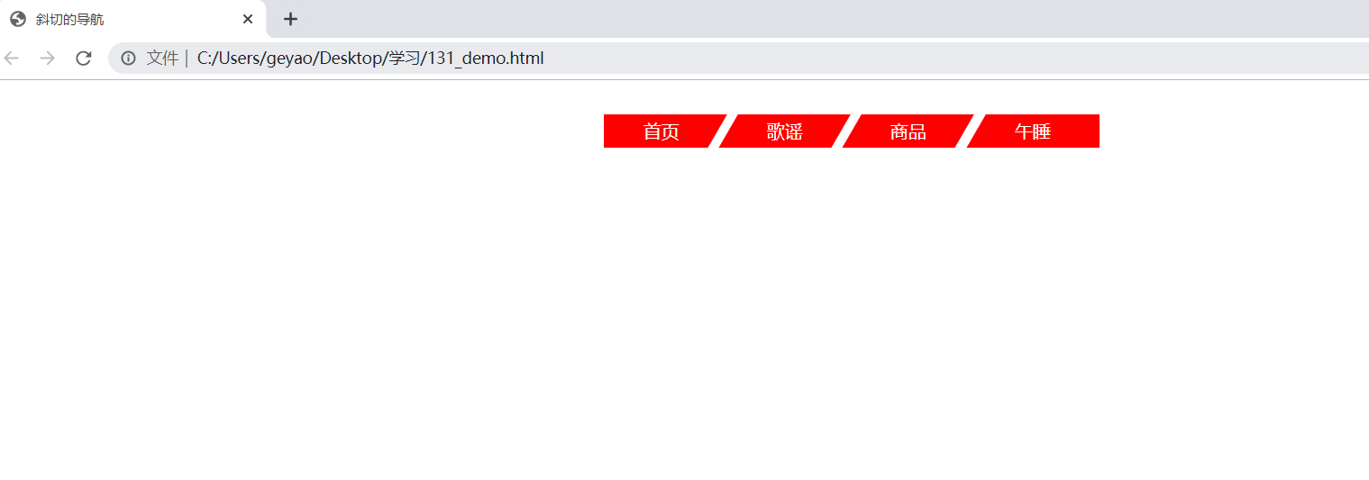 ul li{float: left;width: 100px;height: 30px;background: red;color: white;line-height: 30px;text-align: center;margin: 0 5px;transform: skew(-30deg);}