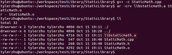 然后,通过ar工具将目标文件打包成.a静态库文件