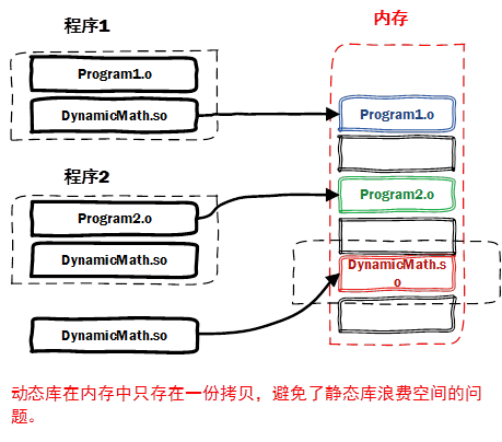 动态库在程序编译时并不会被连接到目标代码中,而是在程序运行是才被载入。不同的应用程序如果调用相同的库,那么在内存里只需要有一份该共享库的实例,规避了空间浪费问题。动态库在程序运行是才被载入,也解决了静态库对程序的更新、部署和发布页会带来麻烦。用户只需要更新动态库即可,增量更新。