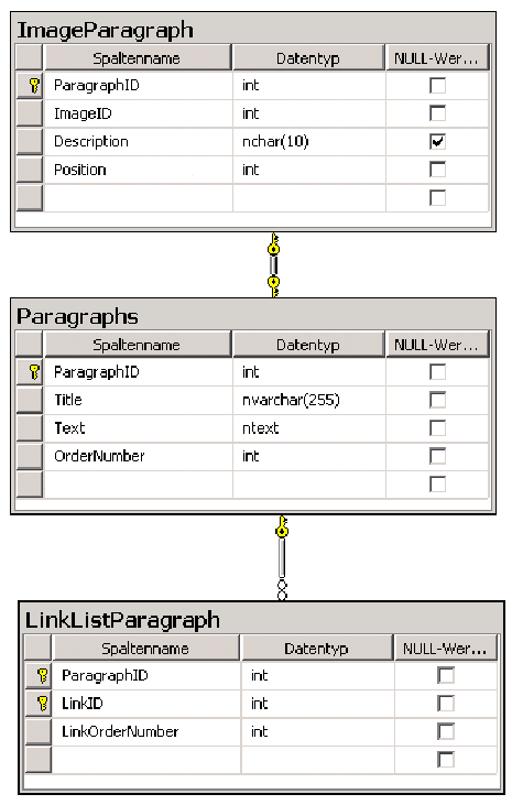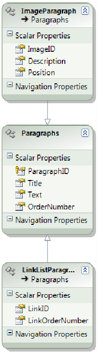 The inheritance for ImageParagraphs works perfect, but I am not able to make a Table Per Type inheritance with LinkListParagraph because of the different primary keys (ParagraphID; ParagraphID+LinkID):