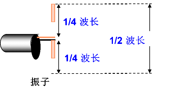 两臂长度相等的振子叫做对称振子。每臂长度为四分之一波长、全长为二分之一波长的振子,称半波对称振子。
