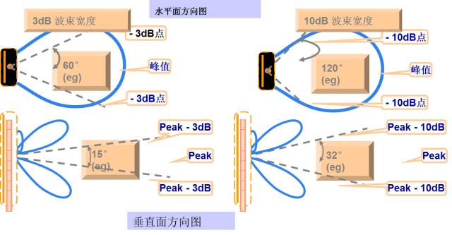 定义为:在主瓣最大辐射方向两侧,辐射强度降低 3 dB(功率密度降低一半)的两点间的夹角定义为波瓣宽度(又称波束宽度或主瓣宽度或半功率角)。波瓣宽度越窄,方向性越好,作用距离越远,抗干扰能力越强。