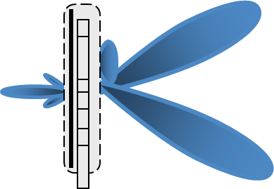 在我们的“扇形覆盖天线”中,反射面把功率聚焦到一个方向进一步提高了增益。