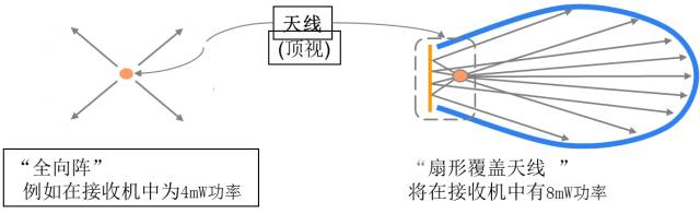 这里, “扇形覆盖天线”与单个对称振子相比的增益为10log(8mW/1mW) = 9dBd。