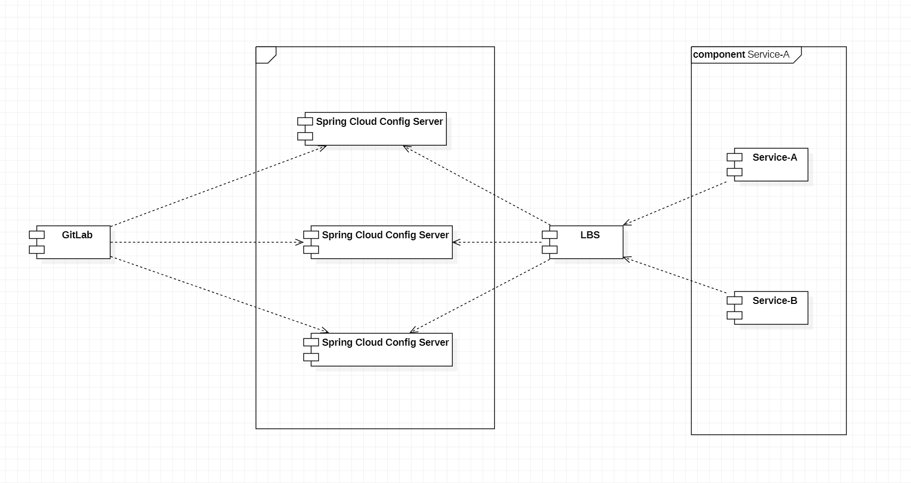 Spring Cloud Config Server成为一个普通的微服务,在负载均衡组件的作用下为其它业务相关的微服务提供配置服务。