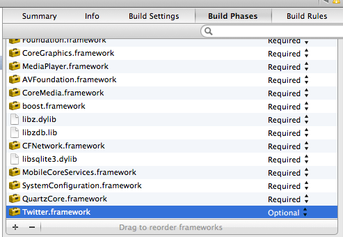 You must check that the Twitter.framework is linked "optional". Go to You Target, choose "Bild Phases", select "Link Binary With Libraries" and selection "Optional" at the Twitter.framework.