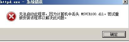 注1:如果Apache2.4.4没有安装VC10库,会出现如下提示的错误。